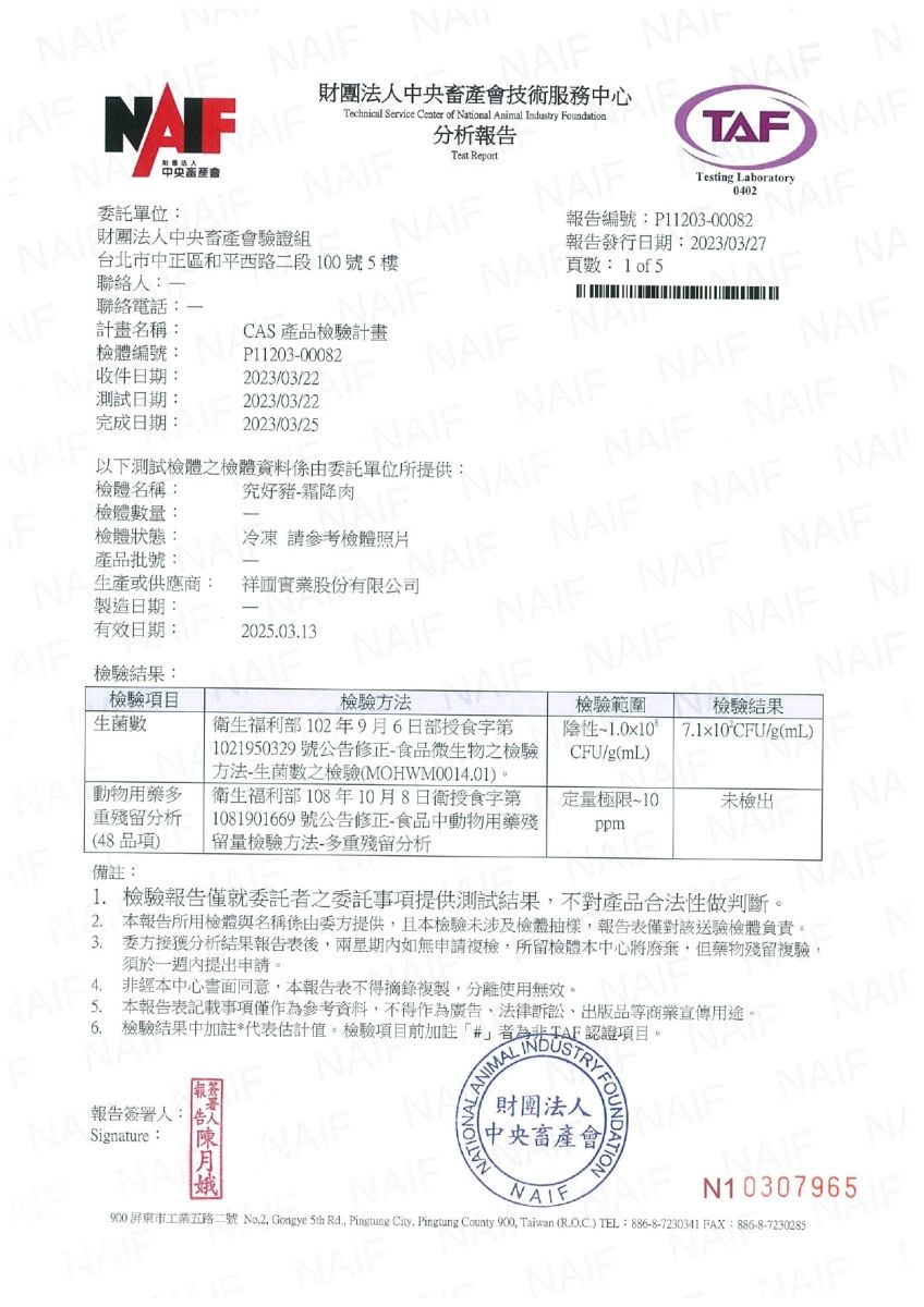 ■ 內容物名稱(成分):豬肉(台灣)